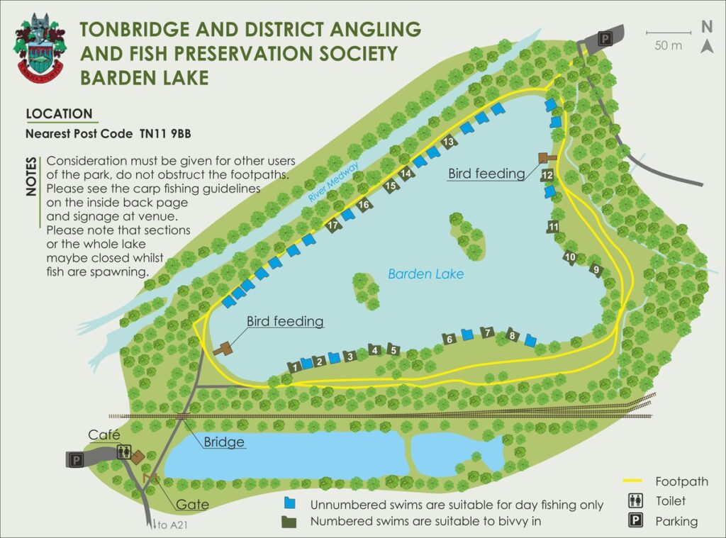 The lake and parking is located within the Haysden Country Park which is just off of Lower Haysden Lane.
